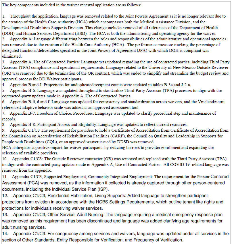 Clients of the Waiver programs, and their families, as well as advocates are encouraged to look very closely at the renewal application.